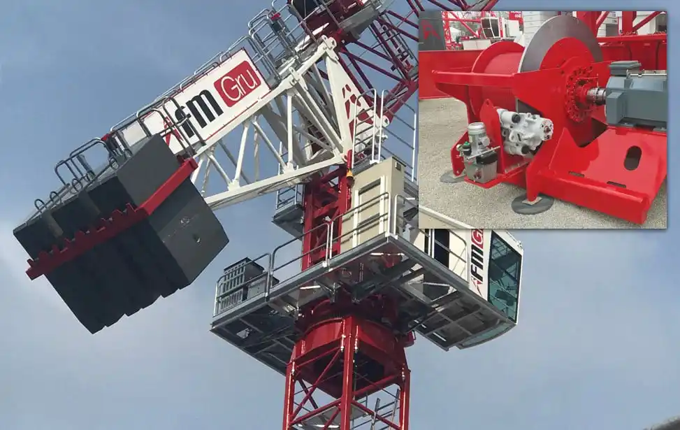- الدوران (التأرجح):يتطلب ذلك فرامل يمكنها توفير تباطؤ سلس لمنع تأرجح الحمولة وثبات الذراع مقابل قوى الريح.
